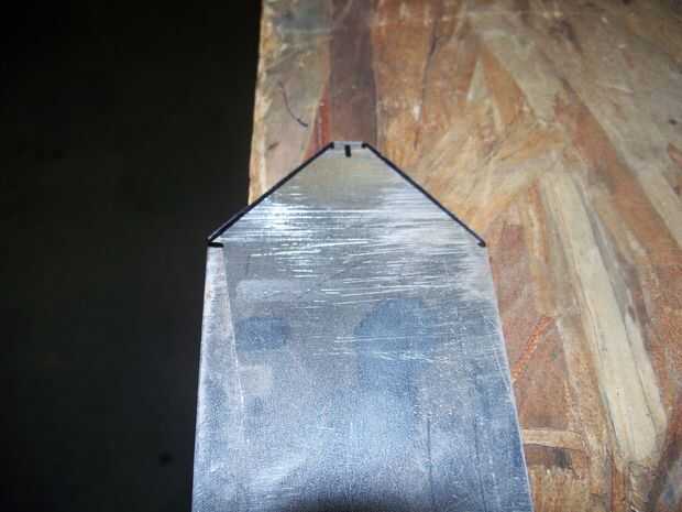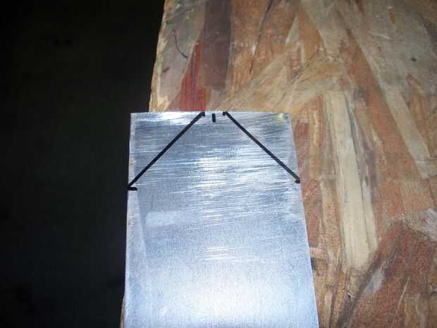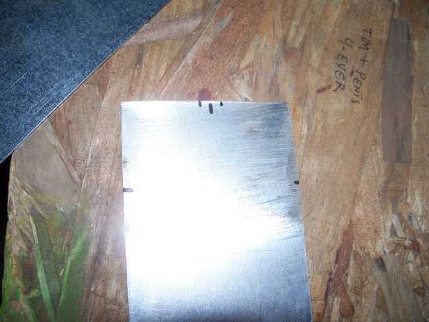 Luego usé un borde recto para hacer una línea de las marcas en el lado de las marcas en la parte superior. (ver foto 4) Luego tomar un par de tijeras para chapa y corte las dos esquinas superiores a lo largo de las líneas.
