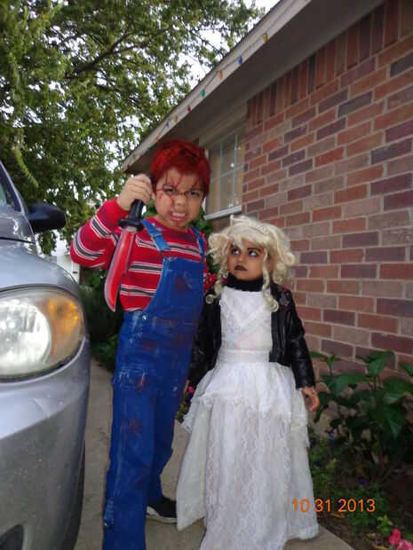Halloween 2012Mis dos inocentes poco demonios ;)Creciendo que siempre dije cuando tuve hijos vestirles como Chucky y la novia. Estas son mis hijas, Jovi Rae y Stevi Lee. Compré el peto y camisa a rayas en la buena voluntad por $6.00 y compró el vesti