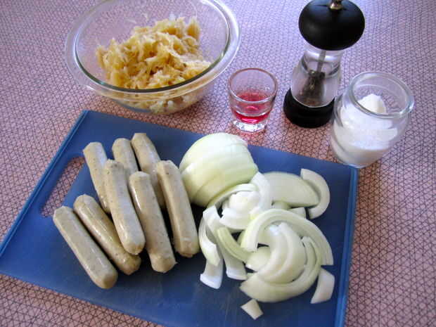 • 4 grandes u 8 salchichas pequeñas de la variedad kielbasa o bratwurst