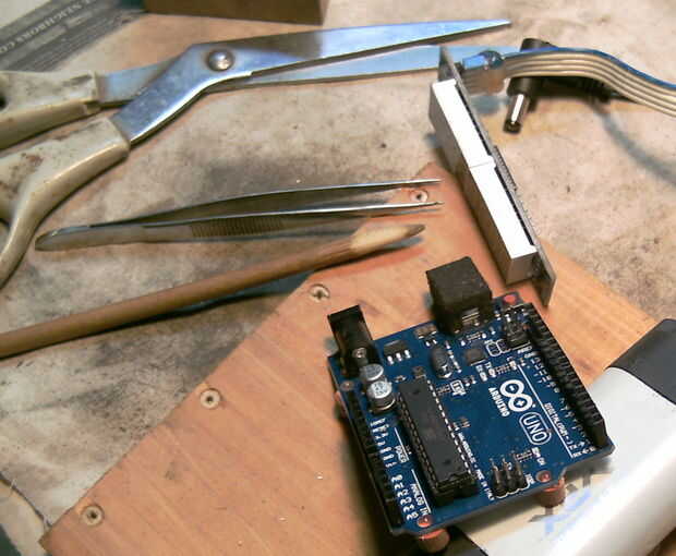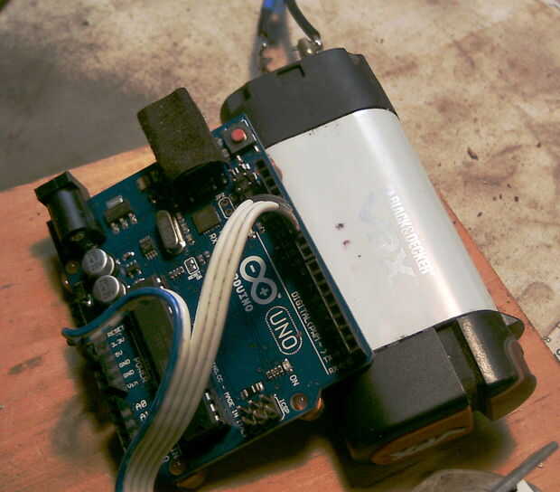 Así que ahora pongo alguna cinta eléctrica de tela en la parte superior de mis cajas de Arduino USB B conector. Parece estilo de todos modos creo.