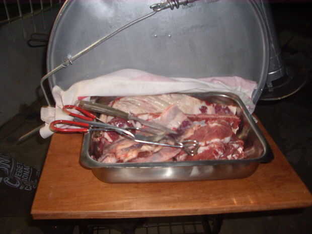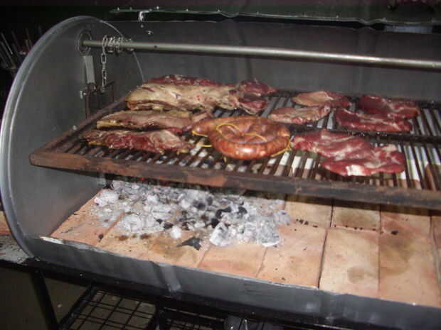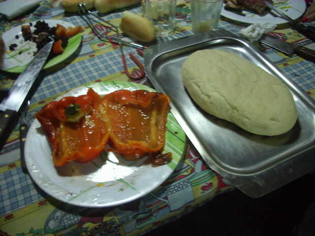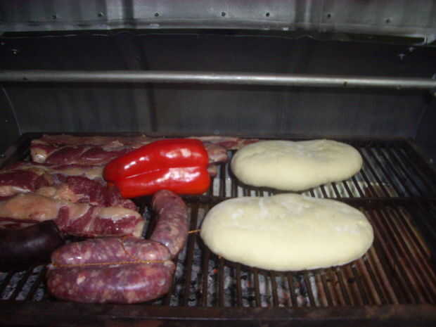 En el gran día, el sábado, todo salió mejor de lo que esperaba. La carne se cocina mucho más rápido, en menos de una hora, era más tierna, más sabrosa y como "bonus tracks" menos carbón consumido. El lunes por la noche mi hija, mi yerno y mi nieta vinieron a cenar y querían ver por sí mismos chulengo operación. Comprar carne y un ají grande e hizo otro asado. Mi hija pensó que sería interesante ver si podría hacer pan y amasados rápidamente dos panes, que fueron muy bien. Tomé la presencia de mi hijo me pide que tome algunos videos cortos.