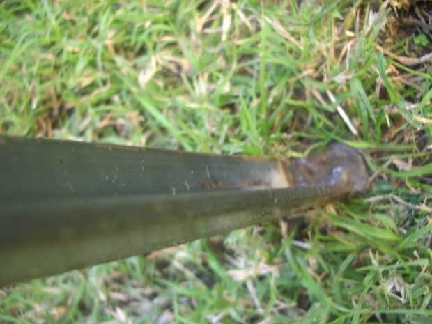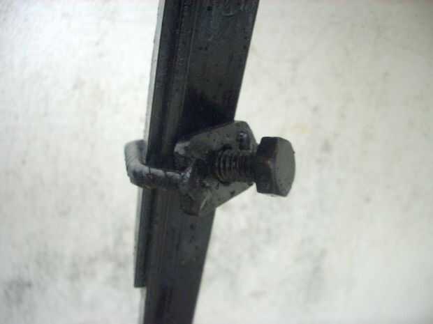 A esa altura me percaté de patas de las de largas de eran unos centímetros más lo convenía, y aproveché la oportunidad para hacerlas extensibles, cortándolas más o menos a media altura y haciéndoles unas pequeñas prensas a tornillo para poder variarles la longitud. Haciendo esa tarea fue se me trabó el disco de la inapropiada y me hice un feo tajo en la mano derecha. El accidente me tuvo alejado del taller dos días.