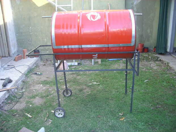 Hay muchas formas de cortar el tambor, elegí la más simple. Puse el tambor en su cuna, dibujé un marcador indeleble la tapa destinada a hacer, imaginar en uso y sin problemas y luego la corte con la amoladora. La proximidad del accidente me hizo para extremar la precaución y el miedo me hizo apretar los dientes. "El miedo no es tonto."