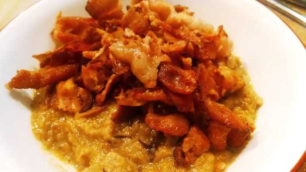 Freír encima el tocino en una cacerola aparte hasta crujientes por ambos lados. Ahora a la mezcla de pera... tiempo para condimentar para arriba. Agregue azúcar morena y todas las especias en la lista de ingredientes. Probar y ajustar a tu gusto. Ahora agregue unos toques más de aceite de oliva y mezclar. Ahora retire la mezcla de pera de la sartén coloca en licuadora, pulso varias veces y reservar en ambos. Tomar tocino crujiente, picar para arriba y añadir en el chutney de pera.