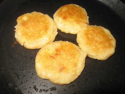 Cocinar las papas y los aplastar a. Agregar el chile rojo en polvo, sal, garam masala, migajas de pan, polvo de cilantro y mezclar correctamente. Hacer redondo forma hamburguesas fuera de él. Coloque las hamburguesas en la sartén y añadir algunas gotas de aceite alrededor de ellos y cocer por ambas caras hasta que se tornen color ligeramente marrón.