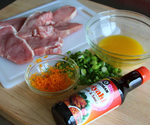 Si sólo se puede encontrar el grueso lomo chuletas, usted puede cortar en la mitad por lo que son más delgados. Es lo que hice.