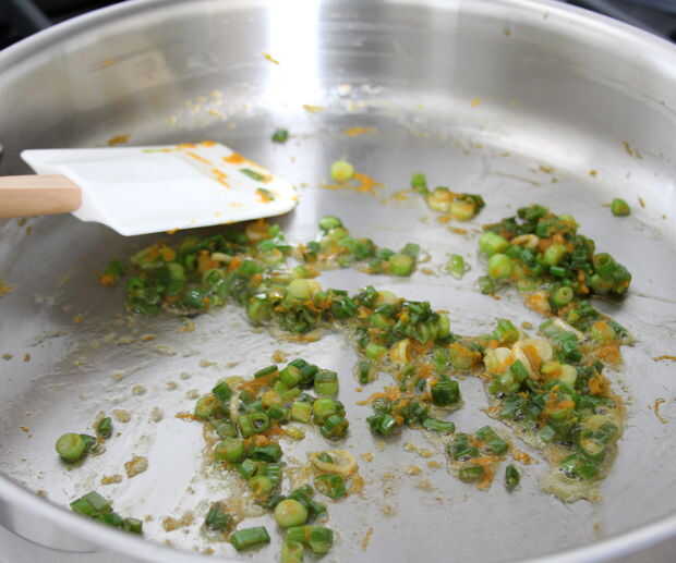 Paso 2: cocinar las cebollas verdes y ralladura de