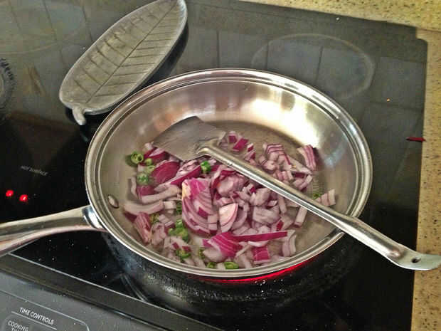 También hervir las patatas. Utilizamos una olla a hervir, pero se puede hacer con un microondas o cualquier otro medio que usted está cómodo con.