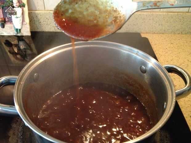 Remoje el tamarindo y las fechas en recipiente separado con 2 tazas de agua en cada recipiente. Puso ambos recipientes en el microondas durante tres minutos. Moler el tamarindo y las fechas, luego use filtrar para drenar exceso pulpa. En una olla todas especias se mezclan con el líquido y cocine hasta que la viscosidad de la salsa picante se hace ligeramente más grueso. Enfriar el chutney y disfruta!