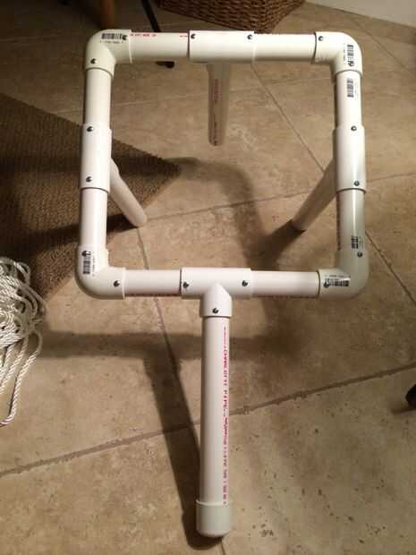 La Asamblea es bastante recta hacia adelante. "Aproximadamente" Medí las secciones de PVC de 6 pulgadas cada uno para formar la base, 12 pulgadas para las 3 patas de la jaula y 18 pulgadas para el tubo de extensión de la bolsa de chum.