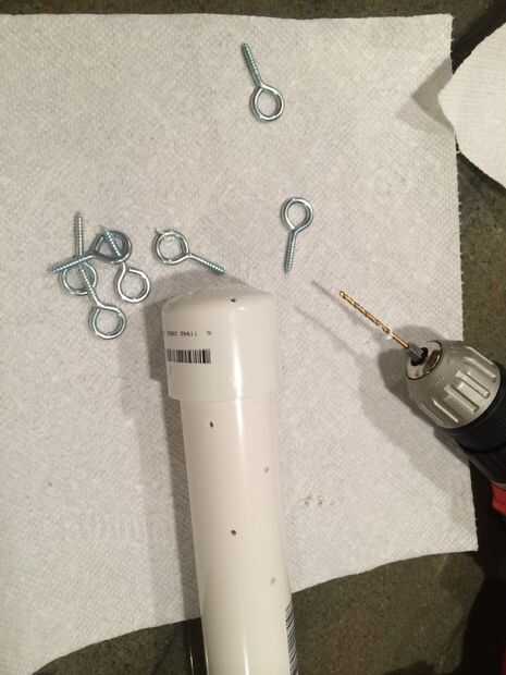 Se puede preparar el chum tubo de extensión por perforar algunos agujeros en el extremo y que algunos de los ojales atornillar en su lugar. Coloqué uno en la tapa y montado el resto en el tubo de extensión del centro en sobre un ángulo de 30 grados en caso de que quise poner más de una bolsa de keta en él.