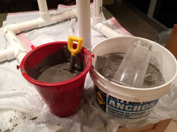 Ahora mezclar el cemento por las direcciones y entonces derramaré cada pierna. Yo seguí mezclando y vertiendo hasta que no hubiera dejado cemento.