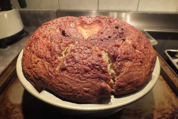 Hornear a 350F precalentado durante 80 minutos o hasta que un pincho de madera insertado salga limpio.