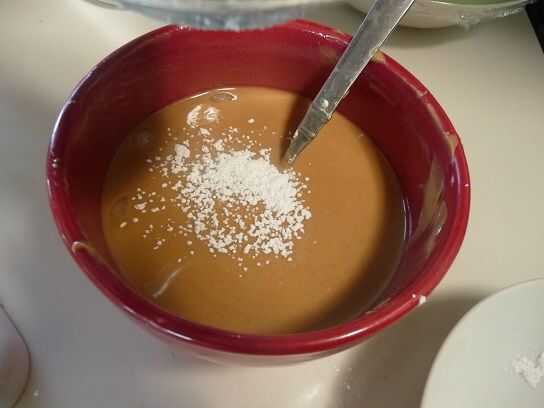 Si la obtiene de la mezcla demasiado fría (firma) sólo masajear suavemente los holgados. La calidez de tus manos debe ablandarlo para arriba muy rápidamente. La temperatura de la mezcla de maní controla su consistencia. Usted controla la temperatura. ;-)