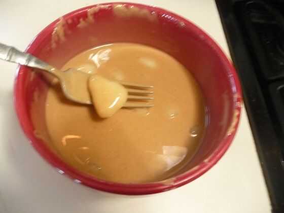 Continuar revolviendo hasta que el aceite derretido y mantequilla de maní bien combinados. La mezcla será muy caldoso.