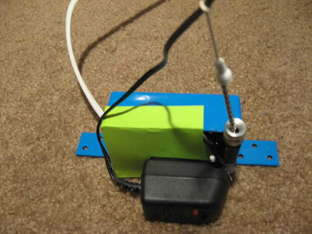 Utilizando la cadena que vino con el tirón del interruptor kit, haga algunos nudos alrededor del cable para no destruir nuestro cargador. Dejar holgura para que al tirar del cable, no jale el cargador sí mismo. Utilizarlo para otros cargadores cuando se cambia los teléfonos o dispositivos.