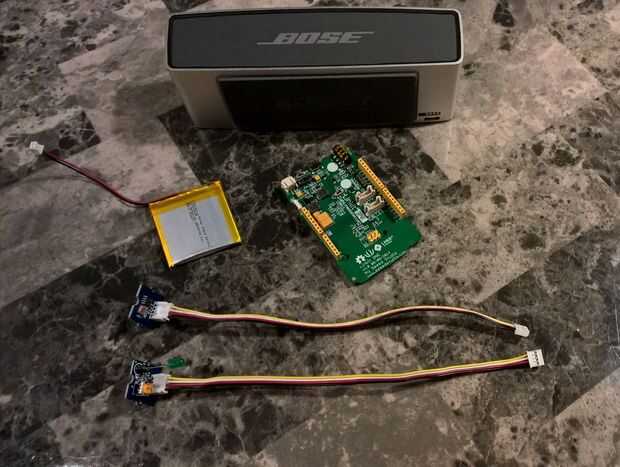 un juguete para nuestro hijo de 3 meses de edad (soy el abuelo) para mantener su atención por utilizando el sonido y luz incorporados en una flor de ikea. Este estaba montado en su basinet. Utiliza una placa de microcontrolador arduino decimillia, Bi