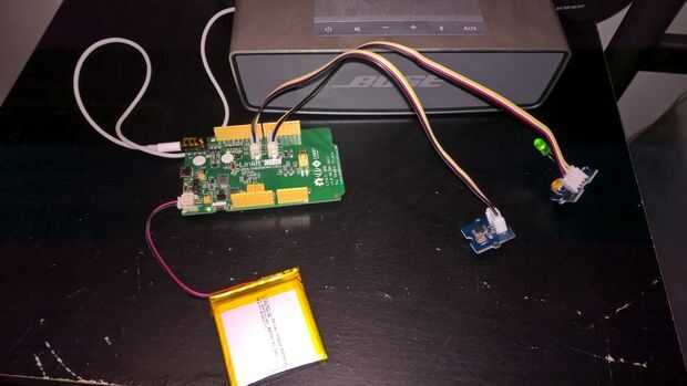 un juguete para nuestro hijo de 3 meses de edad (soy el abuelo) para mantener su atención por utilizando el sonido y luz incorporados en una flor de ikea. Este estaba montado en su basinet. Utiliza una placa de microcontrolador arduino decimillia, Bi