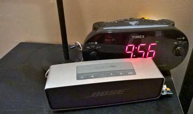 un juguete para nuestro hijo de 3 meses de edad (soy el abuelo) para mantener su atención por utilizando el sonido y luz incorporados en una flor de ikea. Este estaba montado en su basinet. Utiliza una placa de microcontrolador arduino decimillia, Bi