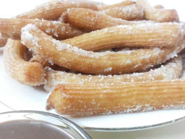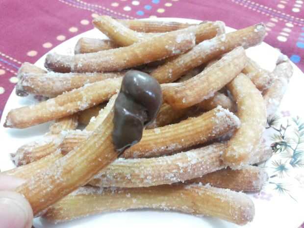 5. Churros de rodillo escurrido en la mezcla de canela y azúcar.