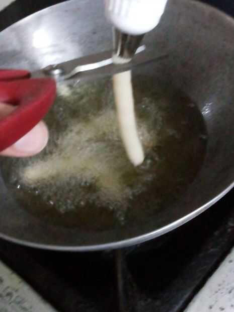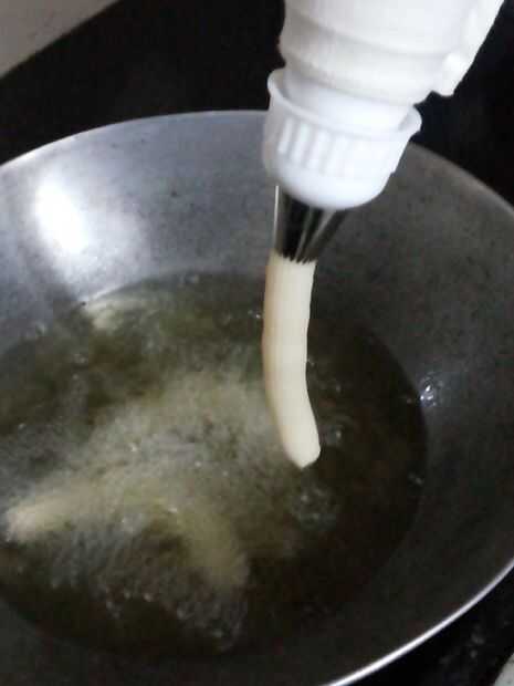 2. tubo de las tiras de masa en el aceite caliente de la Manga pastelera.