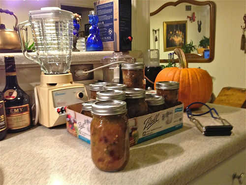 Calabaza de invierno es abundante ahora y es una perfecta base para salsas picantes, así como las empanadas más tradicionalmente reconocidas, sopas y guisos. Este chutney es una gran manera de utilizar calabaza u otros zapallo como se puede servir caliente o frío, como condimento de carnes, o como topping de queso brie por sí mismo o en croute, y una vez completado, puede ser conservado para uso posterior. Hay un poco de tiempo preparación pelar y picar la calabaza y las otras frutas y verduras, pero la cocina real es hacia adelante.