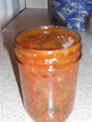 mi gran de desde hace este chutney de tomate verde muy picante y dulce como recuerdo. Es fantástico como un condimento en una hamburguesa o simplemente con queso y galletas.Es una manera brillante usar tomates inmaduros si el tiempo (como este año) n