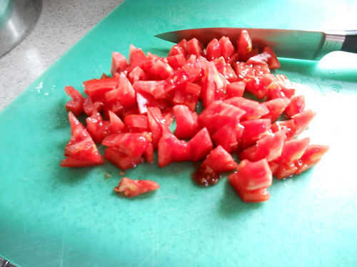 • Lavar, núcleo y picar los tomates.