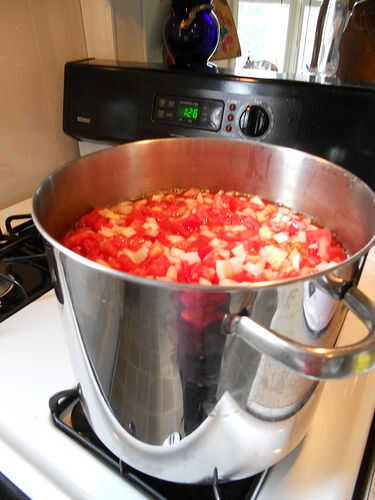 chutney de tomate es una gran manera de almacenar ese exceso de tomates que sucede cada año. Y lo mejor de todo es deliciosa!Recogí esta receta gratis en mi supermercado local. Es rápido, simple, barato y sabroso, perfecto para comer con quesos y emb