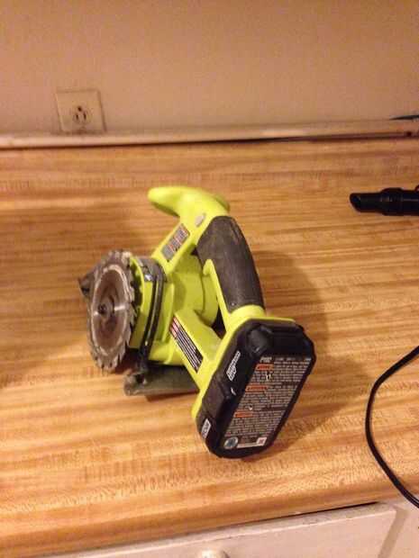 usé una sierra circular sin cable para cortar un rectángulo del lado de la botella.