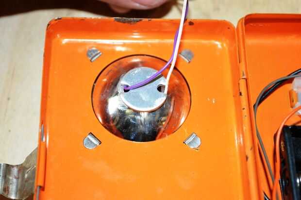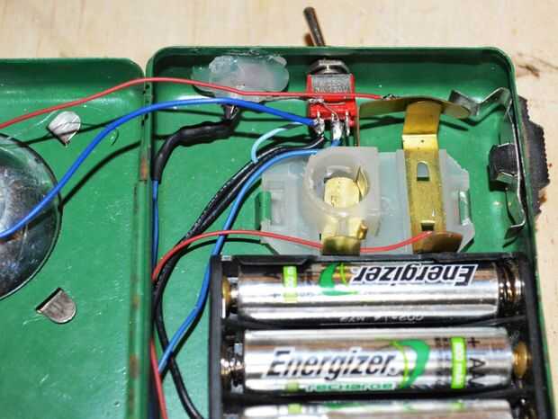 3. Conecte el cable positivo a una parte del interruptor original. Mi interruptor original era bastante simple y trabajado empujando hacia abajo un trozo de cobre para conectar a otro que se une a las baterías.