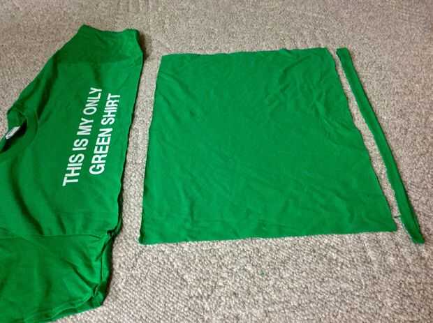 Cortar el dobladillo y el corte de la camisa directamente a través de derecho debajo de las mangas. Esta es la pieza circular que se utilizará para hacer un pedazo largo de hilo.