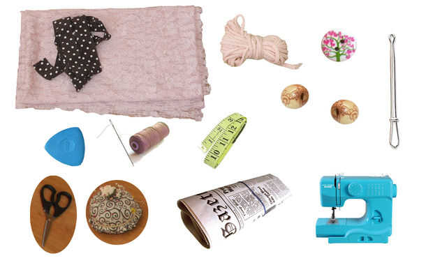 Para este proyecto, encontré todo lo que necesitaba de mi inventario de embarcaciones, no necesitaba a comprar nada. Mi vieja falda adorno que he usado como tela de lazo cubierta coincide con el color del vestido tan bien, casi se siente como ha destinado a ser. :-)