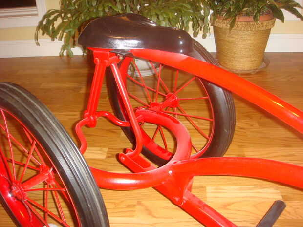 El ciclo del Jockey es un triciclo muy inusual, ya que cuenta con dos grandes ruedas traseras y una rueda delantera muy pequeño. Lo que hace aún más inusual es la manera funciona. En lugar de los pedales generalmente rotatorios, el ciclo de Jockey dispone de un bar que se empuja hacia abajo ambos pies. Esto da vuelta a la manivela del eje trasero que gira las ruedas traseras. Otra característica inusual es que la silla/silla se mueve hacia arriba y hacia abajo cuando las ruedas, dando al jinete la sensación de un caballo.