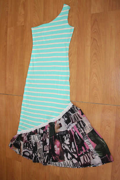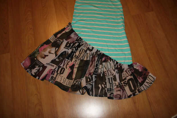 Ahora lo único que nos quedas para hacer en este paso es el borde de dobladillo y coser la cola en el vestido. Para evitar que el fregadero de la tela de la gasa en la máquina de coser, he usado el truco del periódico otra vez. No estoy muy seguro de que puedo hacer la interfaz entre el vestido y la cola perfectamente. Así que añadir el ajuste del cordón para embellecerla. Si usted es más experimentado fabricante de tela, esto es opcional.