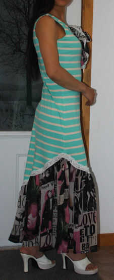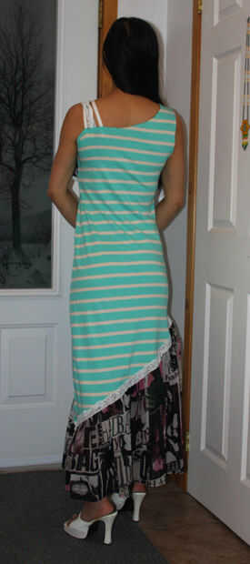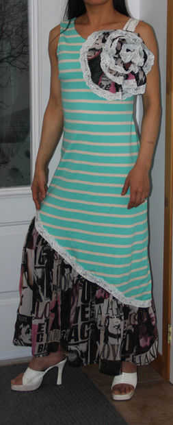 Estoy muy contenta con mi vestido, se ve un poco más dramática de lo que pensaba. Supongo que es parcialmente mi culpa. Porque no me gusta tener sobras, el vestido sí mismo es 1-2 pulgadas más de lo diseñado y la flor es 1-2 pulgadas más grandes que el diseñado. Bien, yo sólo usar tacón alto y utilizar a los más la flor superior. :-D