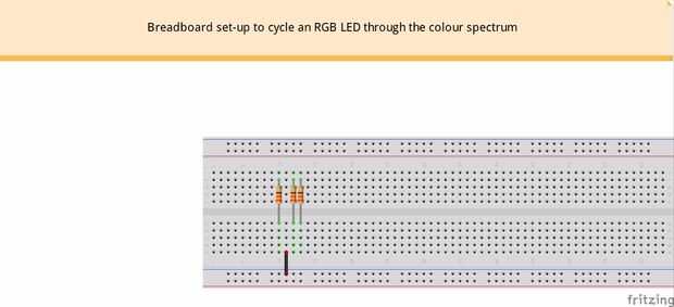 Piense que un LED RGB 3 LEDs diferentes en uno. Si tuviéramos 3 LEDs individuales en un circuito utilizamos un resistor para cada uno, y así que tenemos un resistor para cada pierna de color del RGB LED.