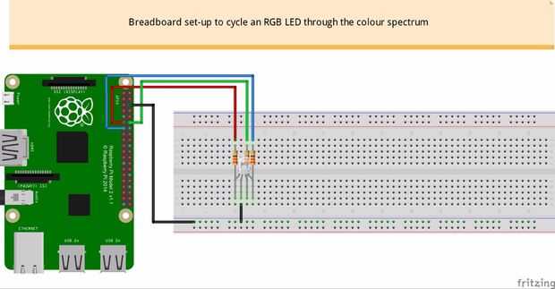 Ciclo de un LED RGB por todo el espectro de color con un Raspberry Pi 2 y cero (8 / 11 paso)