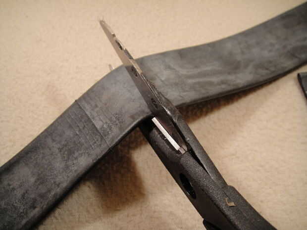 el título lo dice todo. Es una vaina de cuchillo hecha de un tubo interno. Incluso puede deslizar sobre su cinturón.Paso 1: materiales Se necesita:1-bicicleta llanta (partido longitudinalmente)1-carrete de hilo (yo usé hilo de lona)1-aguja1-cuchillo