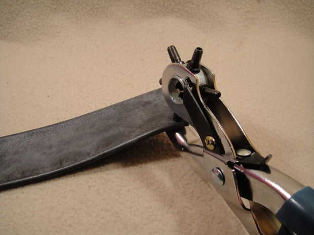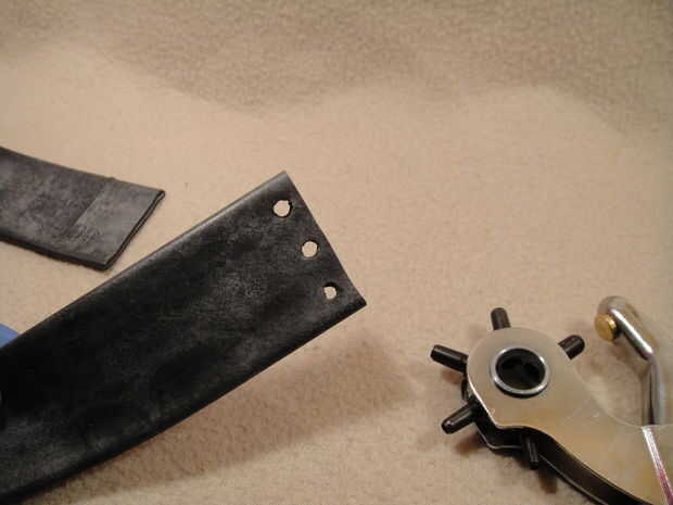 Tres agujeros en ambos extremos del tubo interno para los ojales. ¿Utilicé una perforadora de cuero para hacer esto, pero no parece que les gusta tubos interiores demasiado, tal vez hay una herramienta mejor?