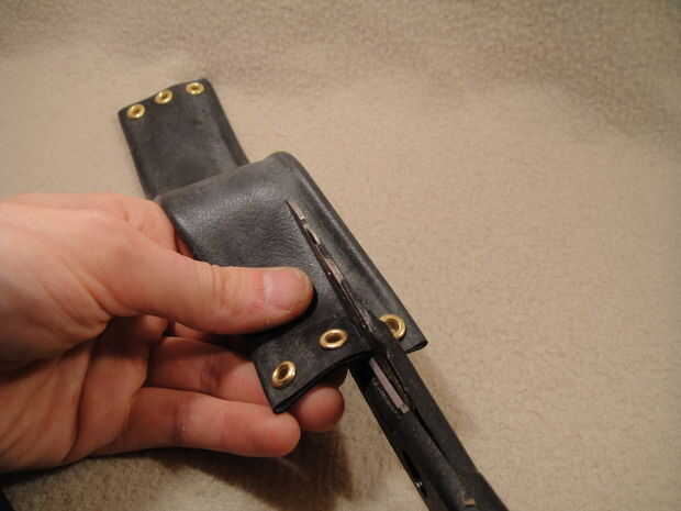 el título lo dice todo. Es una vaina de cuchillo hecha de un tubo interno. Incluso puede deslizar sobre su cinturón.Paso 1: materiales Se necesita:1-bicicleta llanta (partido longitudinalmente)1-carrete de hilo (yo usé hilo de lona)1-aguja1-cuchillo