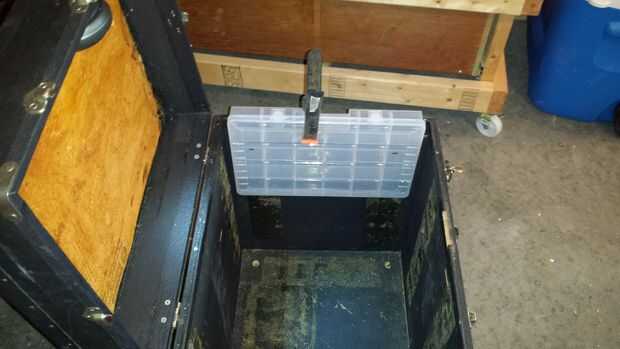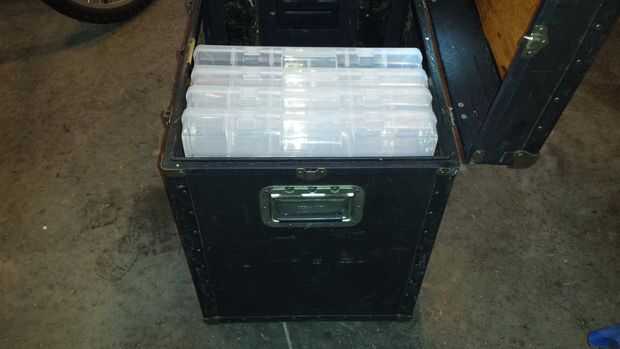 Para el lado de la caja de trastos elegí unas cajas de plástico separador (bandejas) de puerto de carga. Sólo pasaron a ser del tamaño correcto.