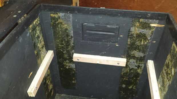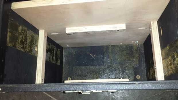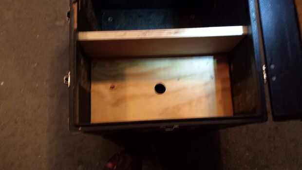 Cuatro establecerá en sus lados a la derecha de la caja. Los descansará en un doble fondo que puede quitarse para tener acceso.