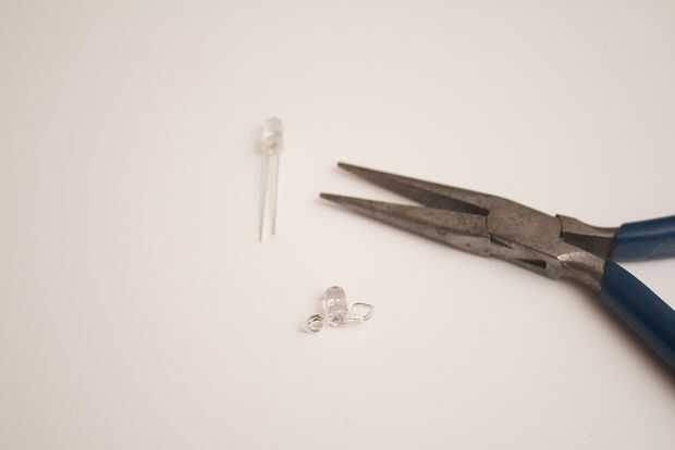 Alicate para doblar la pata positiva horizontal y luego la bobina hacia arriba. Repita esto para la otra pierna pero trate de hacerlos cuadrados bobinas por lo que puede decir la diferencia más adelante.