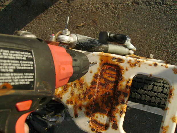Bien casi terminado ahora. casi. Agarra tu punzón (que me olvidé de mencionar que se va a necesitar al principio de esta lección...) y punch 4 puntos... o más si lo desea. Taladro, taladro perfore su vida lejos y! TA dah! ahí lo tienen! Custom. Cosas verdaderamente decorando! Vas a tener cola que te persiguen para pasear arriba y abajo de las calles todo el día, todos los días!