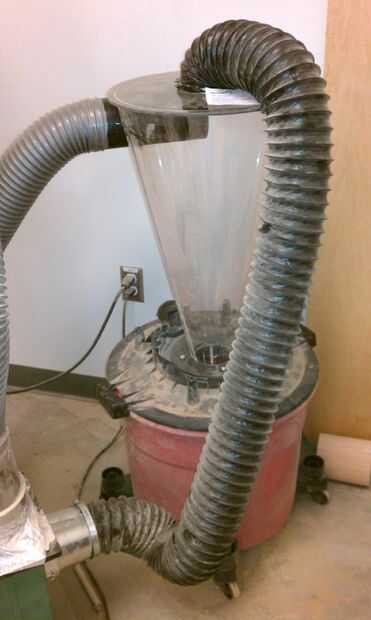 Conecte el colector de polvo a la entrada superior de centro y conecte la herramienta a la tubería que sale de al lado. Esperamos que disfrute de este proyecto. Lo probamos en techshop. Trabajó muy bien. Casi nada fue en el colector de polvo.