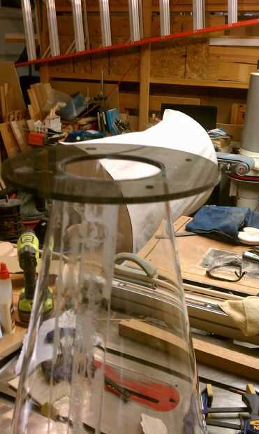 Una vez seca, coloque la parte inferior del lado menor del cono. Pre aptos para asegurar que las piezas encajan entre sí. El fondo deberá tocar la primera pieza encolada. Una vez que se adapta correctamente aplicar pegamento de policarbonato
