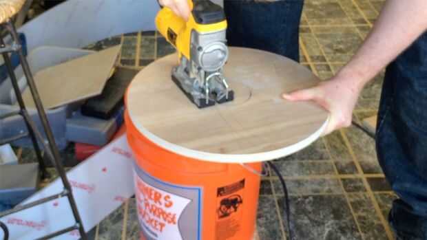 - Cortar un círculo de 16" de ¾" madera contrachapada. Si fueras capaz de salvar el centro 16" del círculo del paso 1, usted puede utilizar para la parte superior.
