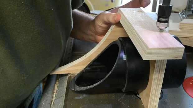 - Cortar la curva en la Sierra de cinta. Si no tienes una sierra de cinta, la Asamblea de entrada se corta en un ángulo, entonces lije la madera para adaptarse a. Puede utilizar un archivo o raspador para agregar la misma curva a los tubos de plástico.
