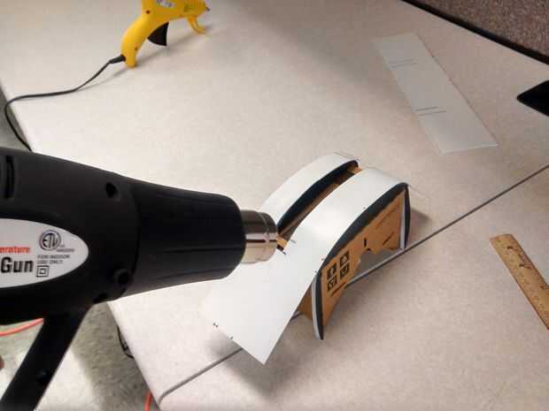 Con el corte de plástico, se centró en el marco de Dodocase y usamos una pistola de calor para formar el plástico a los contornos. Una vez que se establece el arco inicial, alguna cinta adhesiva sujeta los lados por lo que podría ser formados también. Cuando el plástico se enfría, llevó a cabo la nueva forma.